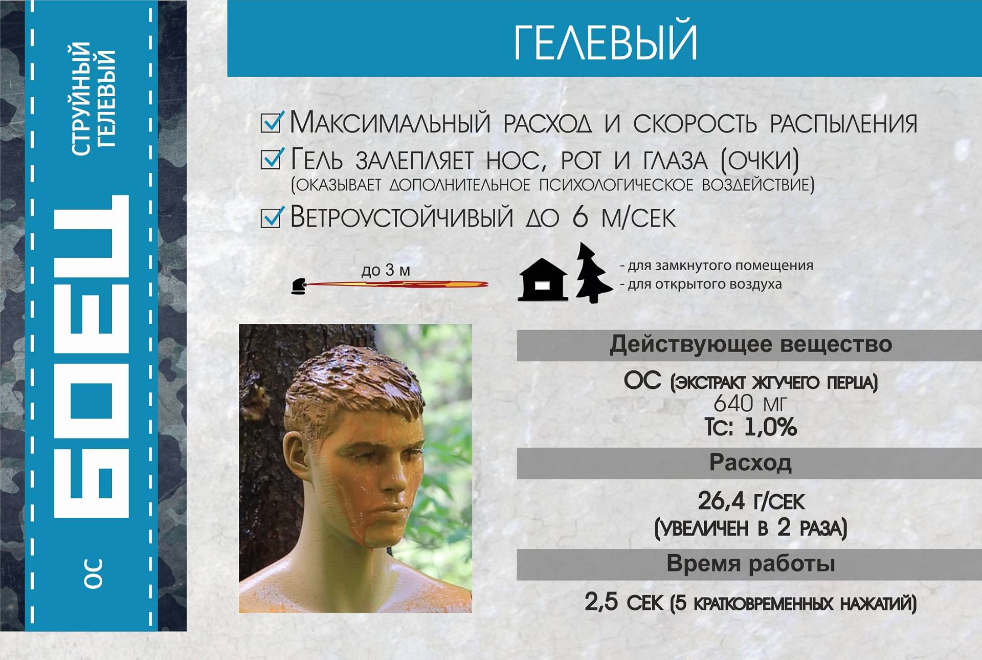 Газовый перцовый баллончик Боец струйный гелевый OC+Tc