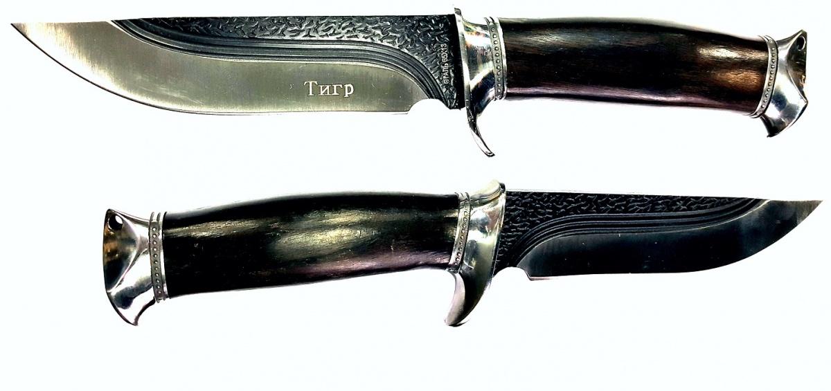 Нож туристический Тигр с деревянной рукоятью, нож в комплекте с ножнами. Длина лезвия ножа 130 мм. На рукояти ножа предусмотрено отверстие для крепления шнурка на запястье. Ножны изготовлены из прочного нетканого материала, в конструкции ножен присутствует петля для ношения ножа на поясном ремне.