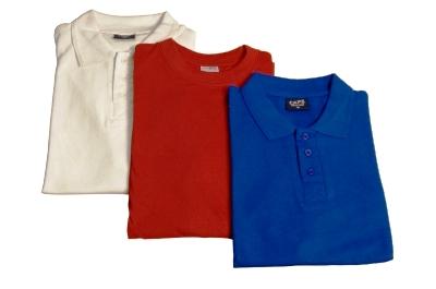 Трикотажная рубашка с застёжкой на пуговицы , отложным воротником , коротким рукавом .