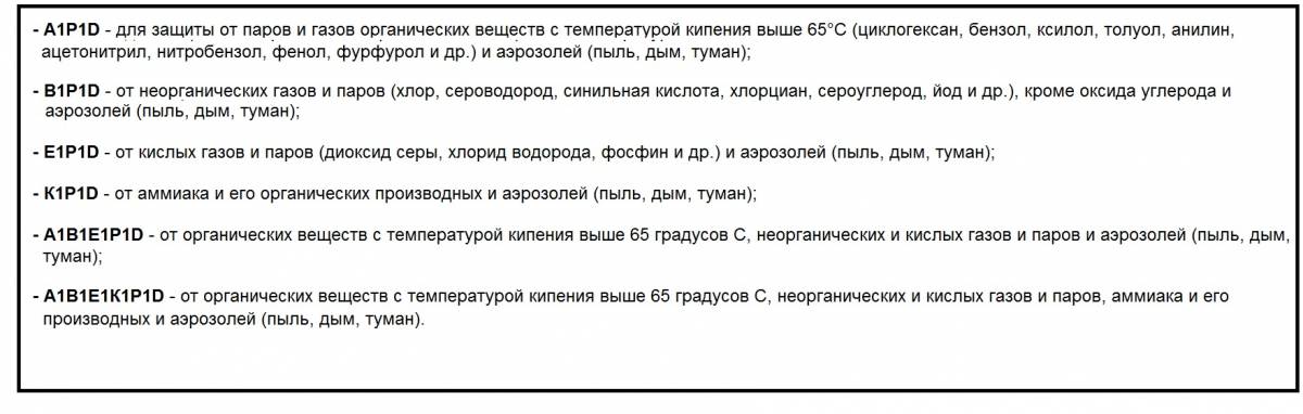 Защищает от органических газов и паров (бензол, эфиры, бензин, нитро соединения бензола, хлор и фосфор органика) аэрозолей и неорганических газов и паров (галогены, сероуглерод), кроме окиси углерода. Цена указана за 1 шт., менять рекомендуется парами. Соответствует ТР ТС 019/2011.