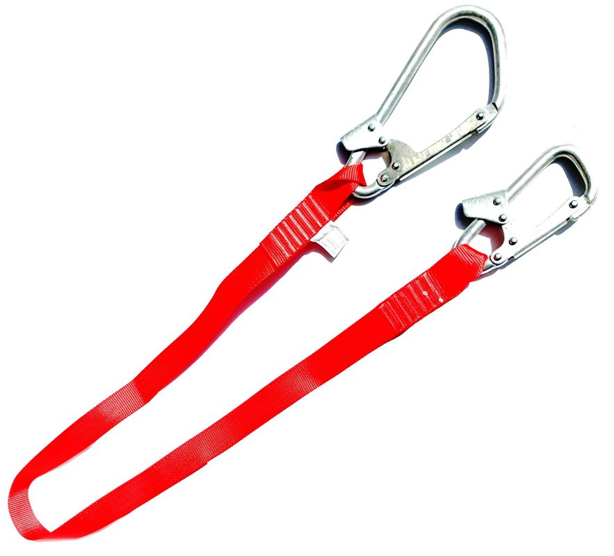 Строп оснащён с обеих сторон двумя карабинами разного размера для удобной работы и присоединения к элементу крепления привязи и к анкерной точке