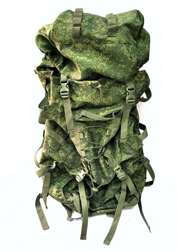 Рюкзак альпинистский армейский в расцветке цифра. Рюкзак объёмом 80 литров с возможностью дополнительного увеличения объёма до 100 литров. Рюкзак с жёстким алюминиевым каркасом со стороны спинки, со множеством различных карманов и системой стяжек.