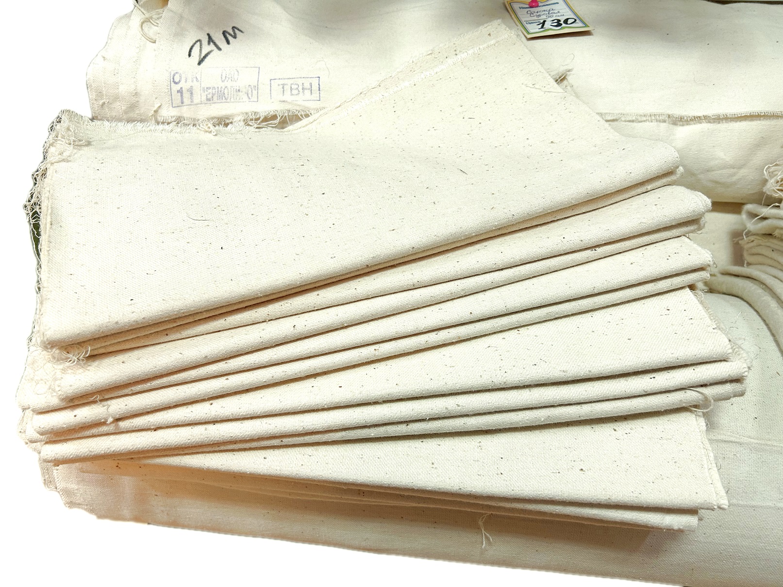 Ткань саржа суровая 100% х/б, плотность 230 гр./м2, в комплект входит один лоскут - разрывается на две равные половины по стороне с размером 0.6 м. и получаются две портянки размером 0.3 х 0.9 м.